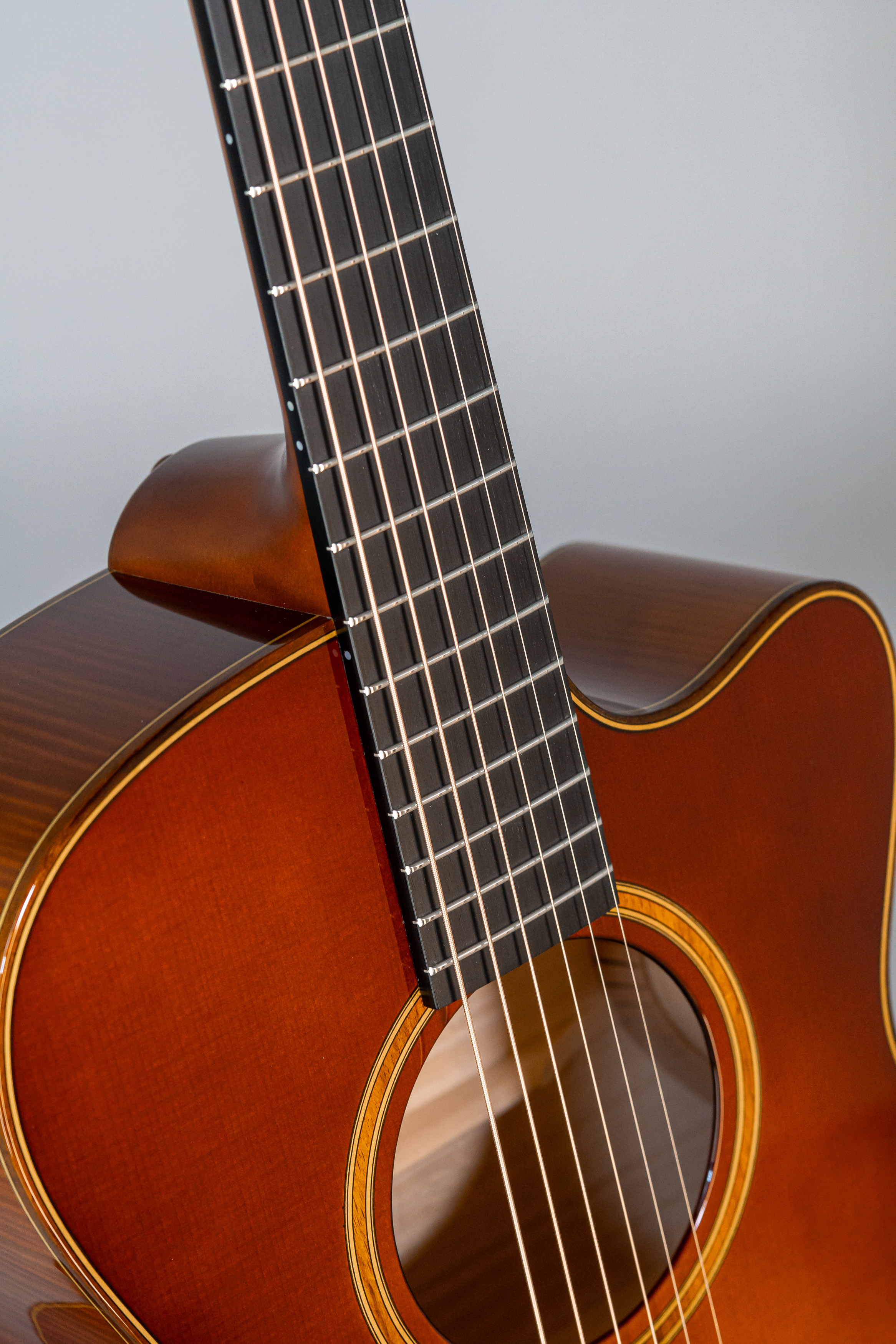 - Margini tavola, fondo e fasce intarsiati in abalone, cutaway