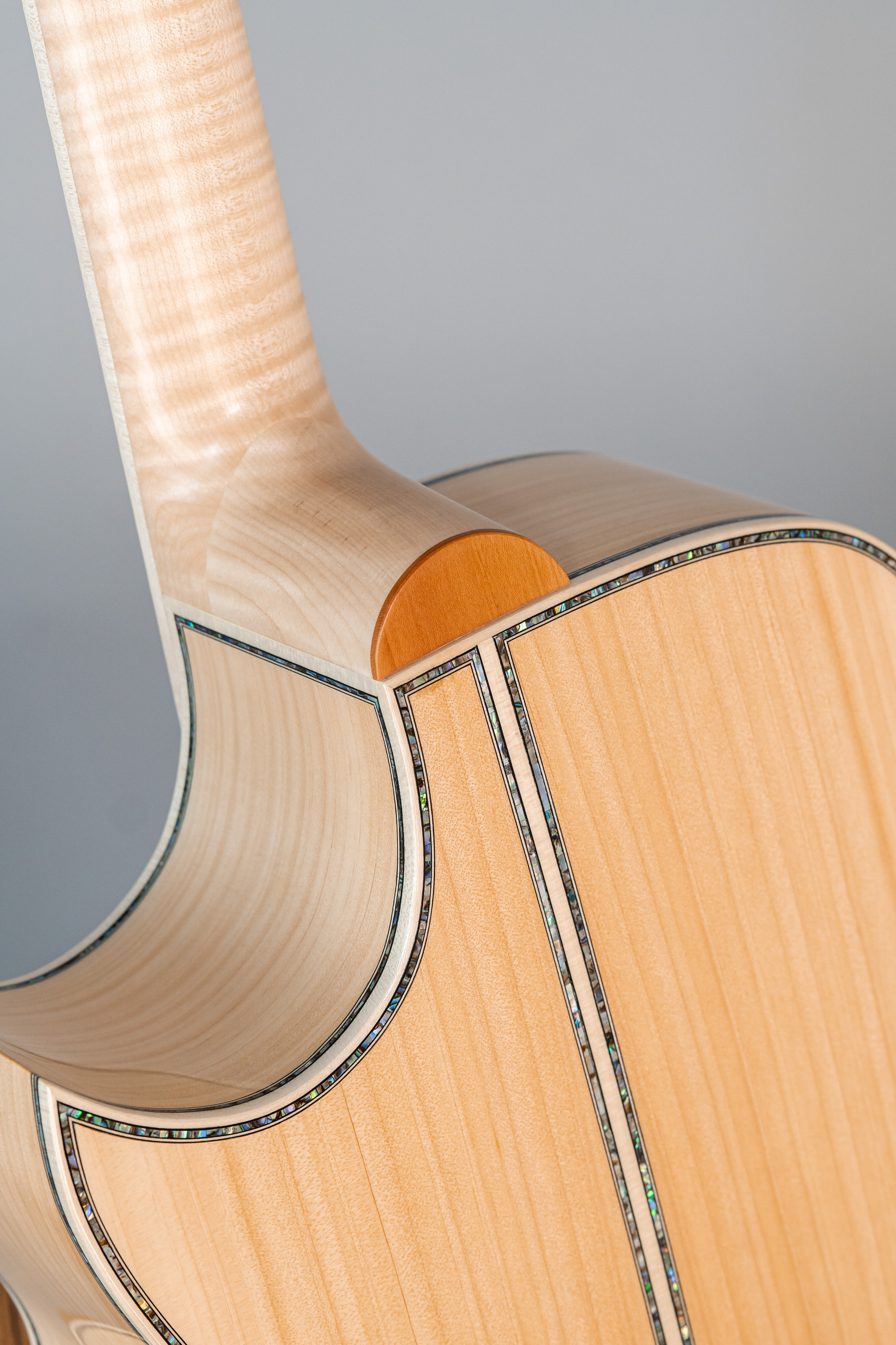 - Wood core slim with abalone purfling